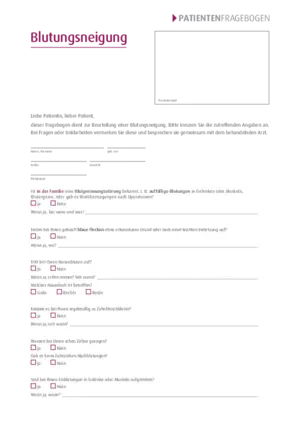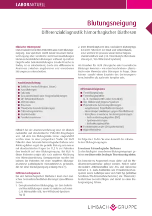 Um die Ursache einer Blutungsneigung zu finden, ist es entscheidend, durch eine differenzierte Anamnese zwischen angeborenen und erworbenen Störungen zu unterscheiden. Hilfreich bei der Anamneseerhebung kann ein klinisch evaluierter und standardisierter Anamnese-Fragebogen sein, mit dem das Blutungsrisiko besser eingeschätzt werden kann.