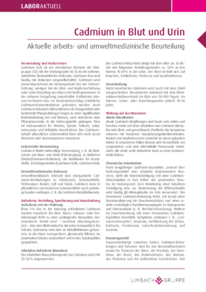 Nach langjähriger Cadmium-Exposition, peroral über Nahrungsmittel oder inhalativ (insbesondere Raucher), steht die Nierenschädigung mit einer Cadmium-Akkumulation in den Zellen des proximalen Tubulus im Vordergrund. Zum Monitoring einer tubulären Schädigung bzw. zur Bestimmung der Effektschwelle wird häufig β2-Mikroglobulin im Urin verwendet. Die chronische Cadmium-Belastung führt, auf Grund einer Demineralisierung der Knochensubstanz und eines reaktiv erniedrigten Parathormonspiegels zu Osteoporose und Osteomalazie (z. B. Itai-Itai-Erkrankung). Weitere im Zusammenhang mit einer chronischen Cadmium- Exposition berichtete Symptome umfassen z. B. „Cadmiumschnupfen“, Anosmie, Gelbfärbung der Zähne, Kalziurie, Proteinurie, Leberfunktionsstörung und Anämie