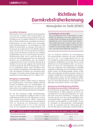 Seitdem ist der quantitative Nachweis von okkultem Blut im Stuhl im Rahmen der gesetzlichen Darmkrebsfrüherkennung nur noch mittels eines immunologischen Nachweisverfahrens von Hämoglobin im Stuhl (iFOBT) im Facharztlabor zu erbringen. Diese Änderung erzielt eine deutliche Qualitätssteigerung in der nichtinvasiven Darmkrebsfrüherkennung.