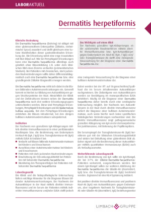Der Nachweis granulärer IgA-Ablagerungen an der epidermalen Basalmembran mittels direkter Immunfluoreszenz bzw. IgA-Autoantikörper gegen Endomysium im Haut-Ak (IgA / IgG) und/oder Transglutaminase-Ak stellt eine zwingende Voraussetzung für die Diagnose einer Dermatitis herpetiformis dar.
