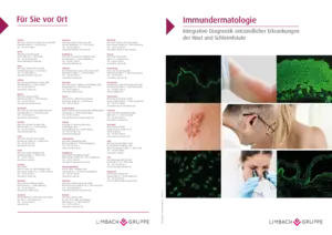 Haut- oder Schleimhautveränderungen können im Rahmen von Kollagenosen, Arthritiden, Vaskulitiden, bullösen und anderen entzündlichen Dermatosen auftreten. In der täglichen Praxis ist bei Verdacht auf eine Autoimmunerkrankung eine umfassende, jedoch zielgerichtete und rationale Diagnostik zu veranlassen. Eine zentrale Bedeutung kommt dabei dem Nachweis gewebsgebundener und zirkulierender Serum-Autoantikörper zu. Die Integration der Fächer Pathologie und Laboratoriumsmedizin bietet optimale Voraussetzungen für die Diagnostik von Autoimmundermatosen. Die in der Limbach Gruppe etablierte Diagnostik wird durch klinisch und im Labor tätige Kollegen mit ausgewiesener Expertise auf dem Gebiet der Autoimmunerkrankungen betreut, die einen besonderen Wert auf eine klinisch aussagekräftige Befundung legen.