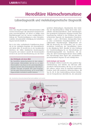 Die Hereditäre Hämochromatose ist eine autosomal-rezessive Erbkrankheit, bei der es zu einer Akkumulation von Eisen in den parenchymatösen Organen kommt. Eine frühe Diagnose mit entsprechender Therapie verspricht eine gute Prognose mit normaler Lebenserwartung, da so irreversible Organschäden verhindert werden können.
