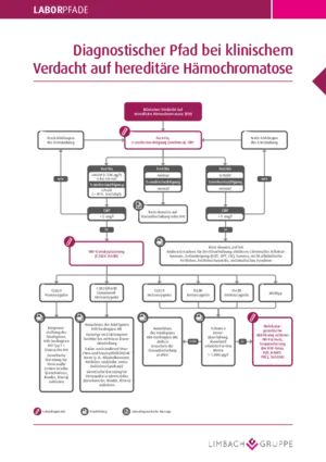 Bei der molekulargenetischen Diagnostik kann nachfolgend zunächst nach den zwei häufigsten Mutationen im HFEGen gesucht werden. Gegebenenfalls kann die Untersuchung auf seltene Varianten im HFE-Gen oder in anderen Genen für Nicht-HFE-assoziierte HH erweitert werden.