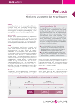 - Im Erkrankungszeitraum der ersten 2–3 Wochen wird die PCR von (tiefen) Nasopharyn- gealabstrichen empfohlen (Untersuchung auf Bordetella-pertussis/parapertussis-DNA).
